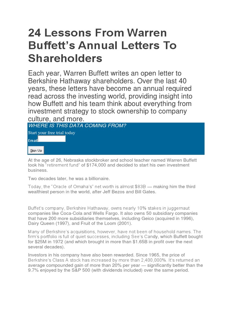24 Lessons From Warren Buffett Pdf Value Investing Share Repurchase