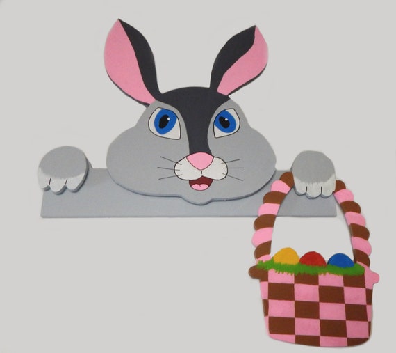 Jumbo Easter Bunny With Basket Option Rabbit Fence Peeker Etsy Uk