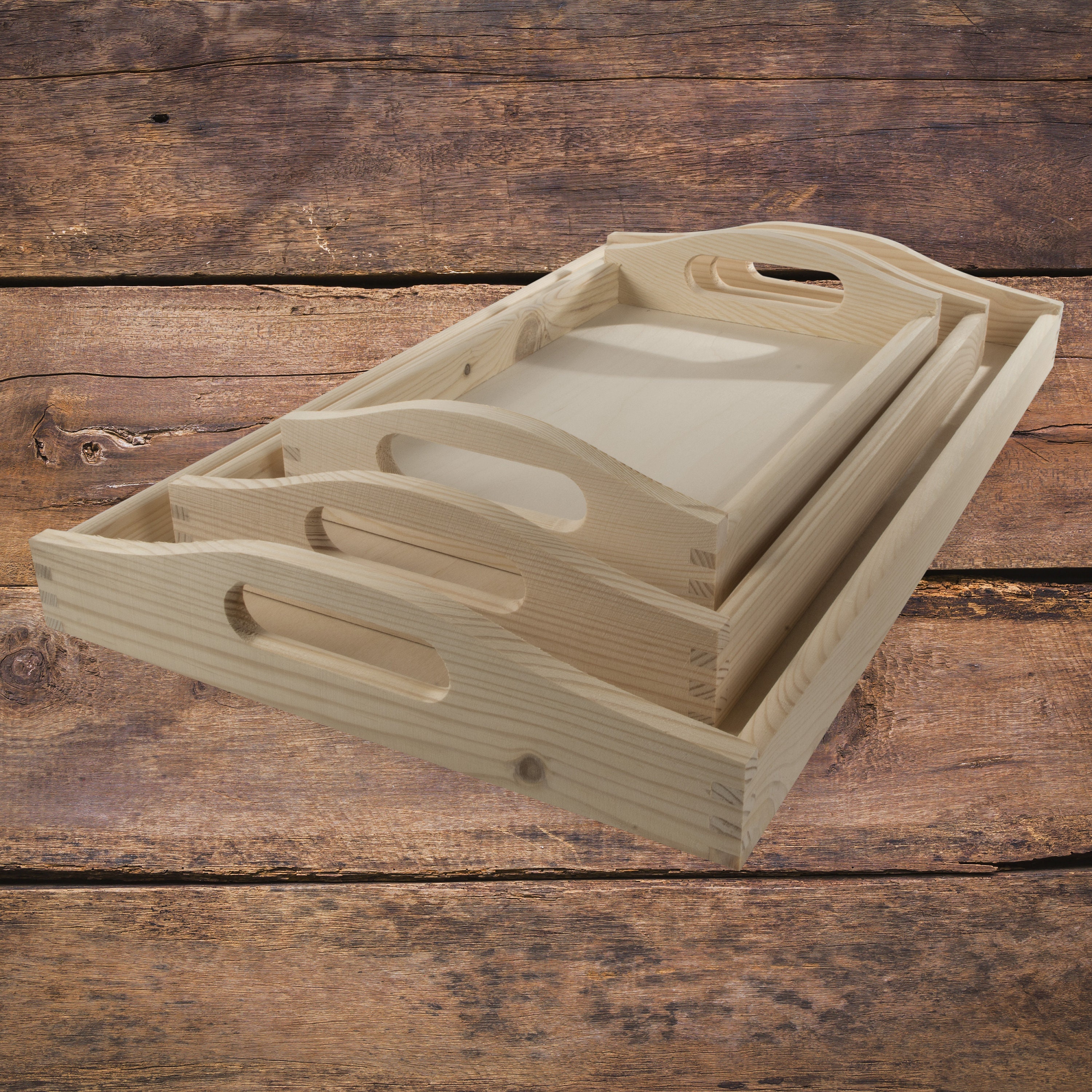 Amazon Com Wooden Living Serving Tray Wooden Trays With Handles And Small Wood Boxes Set Unfinished For Montessori Activity Art Crafts Painting Restaurant Food Decorative Coffee Table 5 Pieces Home Kitchen